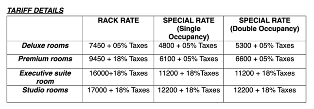 We have blocked a limited number of rooms at this preferential rate exclusively for conference participants. Kindly complete your registration at the earliest to avail this benefit, as rooms will be allotted on a first-come, first-served basis.